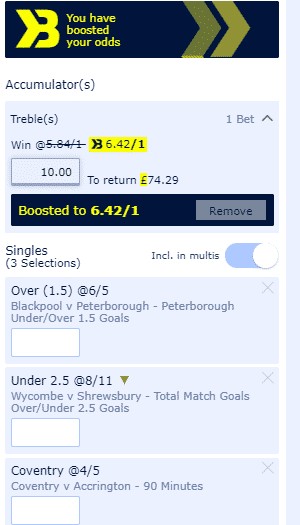 After a brief dalliance with inconsistency, Coventry appear to be back to their best. Mark Robins’ side have climbed to sixth and are unbeaten in their last three matches. Their 2-1 victory over Fleetwood at St.Andrews was a superb result and they followed it up by holding free-scoring Peterborough to a 2-2 draw at London Road. The Sky Blues are a young side who are bound to have peaks and troughs throughout the campaign although they could be too lively for an Accrington side who have struggled on their travels. Accy have won just one of eight on the road so far and have conceded six times in their last two matches away from the Crown Ground. John Coleman’s side are a little unpredictable and they do have their moments, but their 1-0 defeat to Gillingham despite playing well highlights their vulnerabilities.BET NOW – £10 wins £74.20 if all three results come in