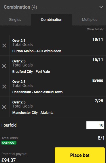 Admittedly, Macclesfield aren’t pushovers on their travels and they are likely to make things tough for any opponent. However, they are facing one of the best home sides in the country in Cheltenham Town. The Robins could easily cover the Over 2.5 Goals themselves and are regularly seen netting two or three goals at the Johnny Rocks Stadium this season. Mike Duff’s side are scoring for fun and have netted 15 times in front of their own fans so far this campaign. They knocked two past Walsall on their travels on Saturday and are full of confidence coming into this tie. Macc conceded twice to Cambridge and three times to Swindon and could find it tough to contain the hosts.Manchester City vs Atalanta – Over 2.5 Goals
