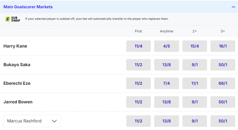 - If your player is subbed off before the market settles, your bet automatically switches to the substitute.