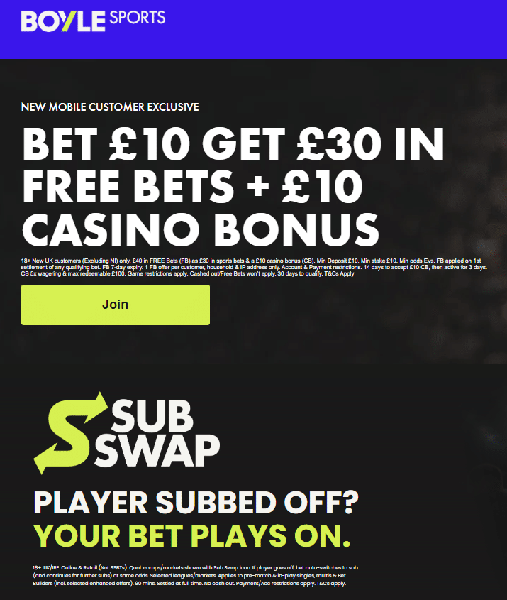 This brings Boylesports in line with other major betting companies, such as bet365, SkyBet, and Paddy Power, which also offer the same promotion – commonly known as Super Sub.