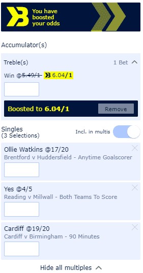 Brentford vs Huddersfield – Ollie Watkins Anytime Goalscorer