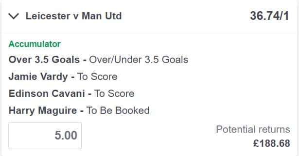 Leicester vs Man United Predictions for a 36/1 Bet Builder Betting Tip