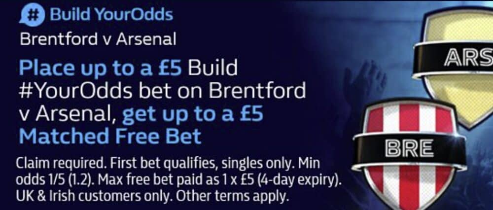 £5 Risk Free Bet Builder for Brentford vs Arsenal