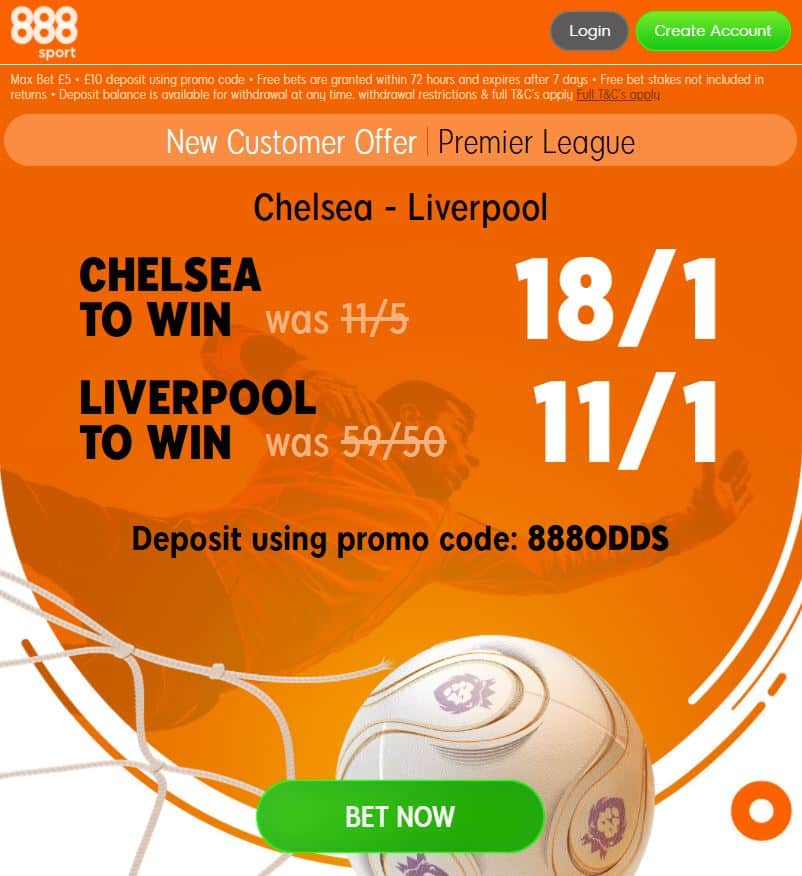 18/1 for Chelsea to win OR 11/1 for Liverpool to win
